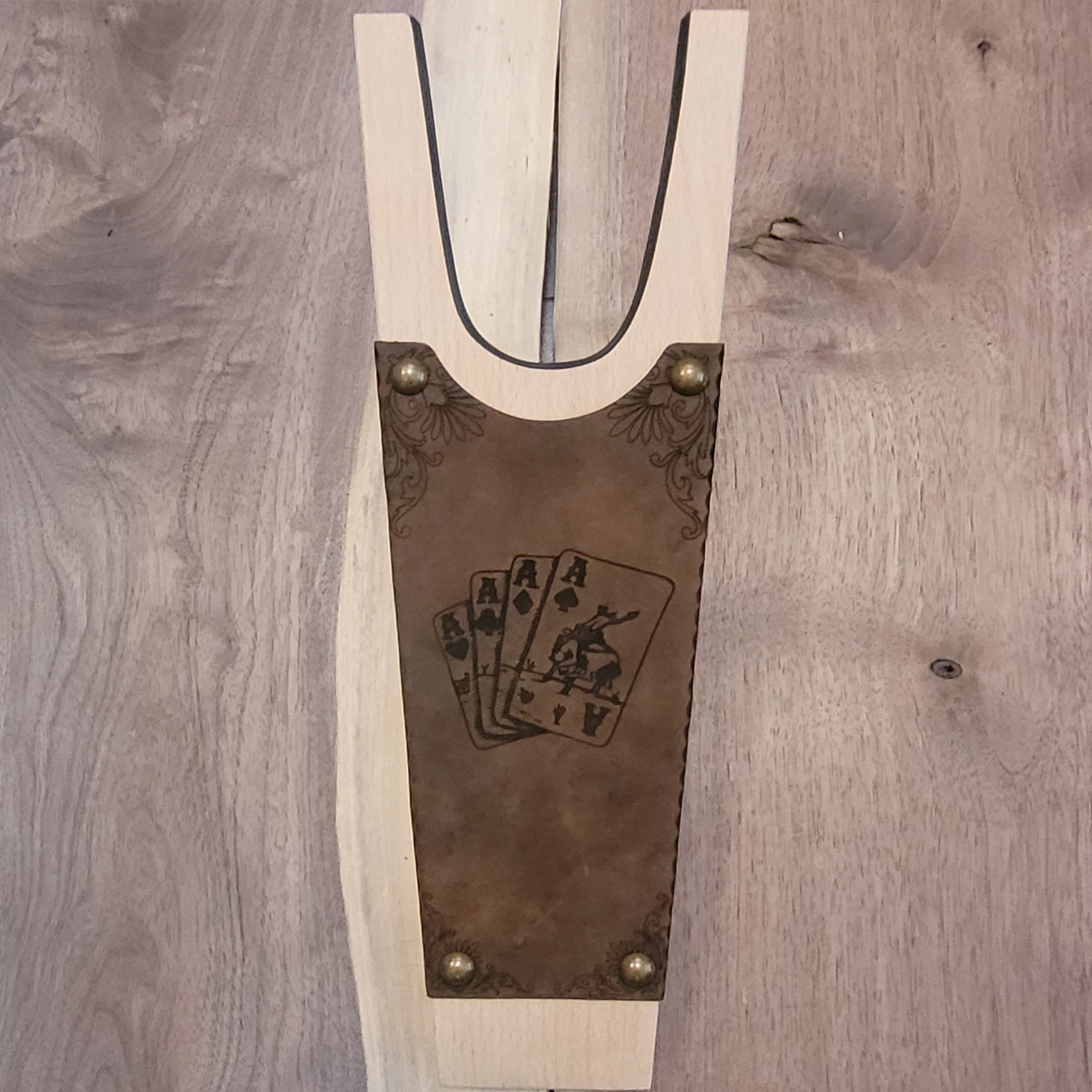 Sure to impress, this boot jack is available with dark brown furniture studs (see the Going Broke Logging picture for an example) or with the gold Texas star as shown in the other pictures.