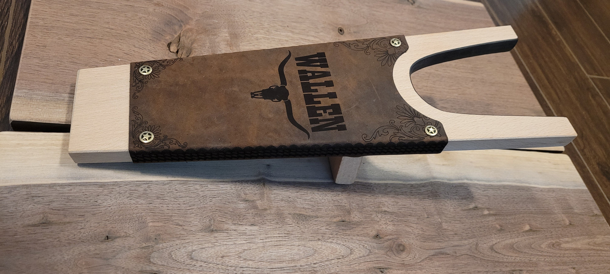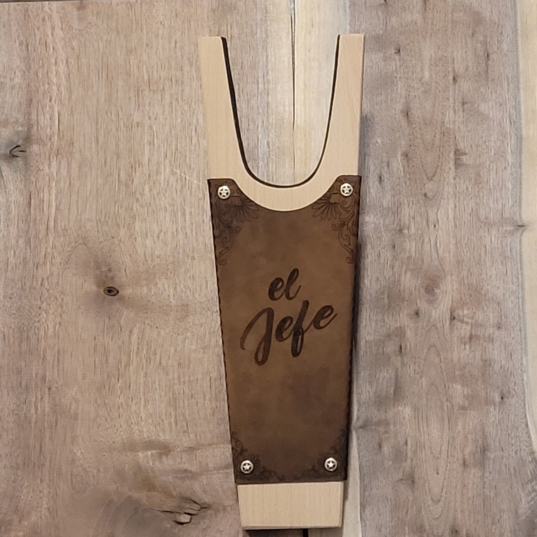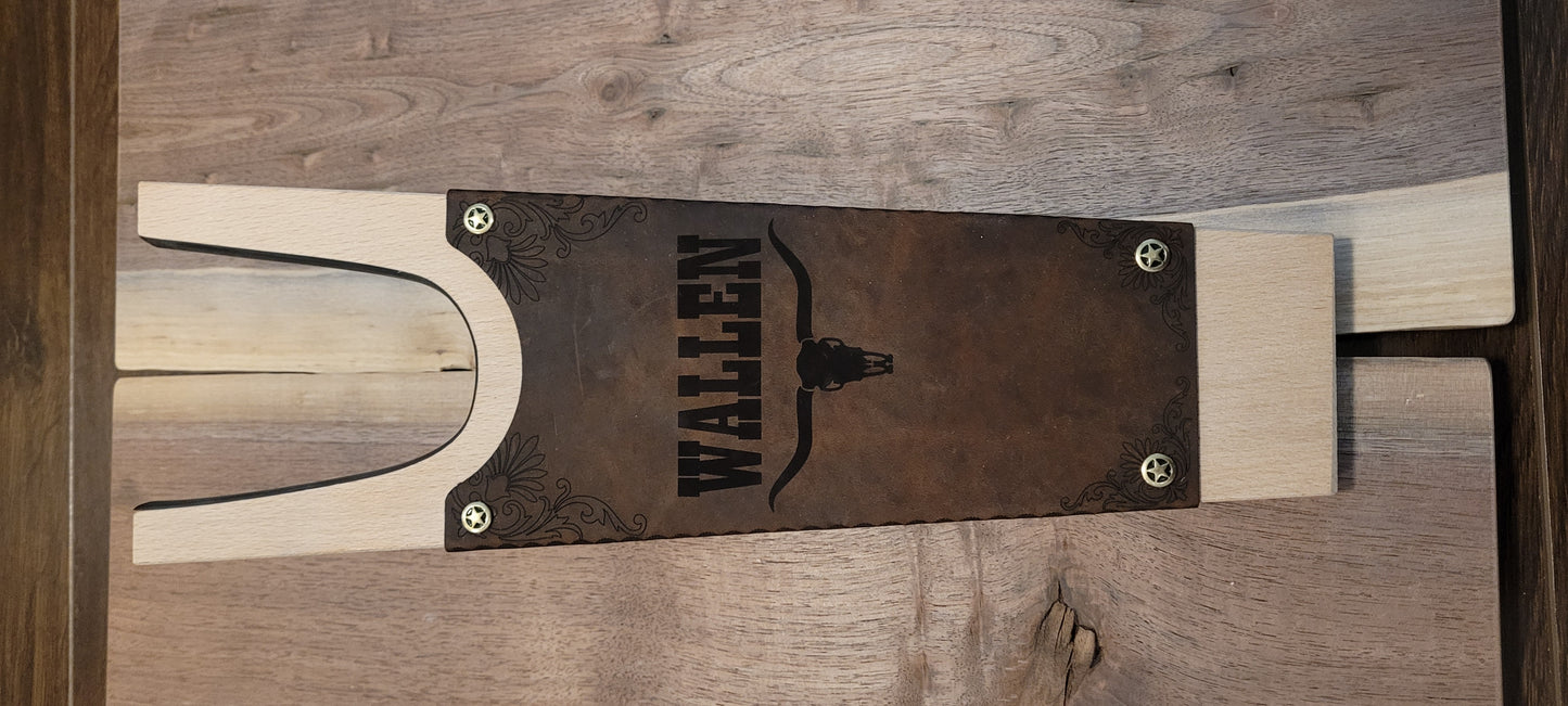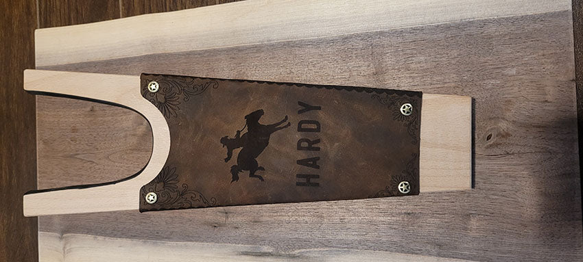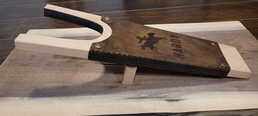 A custom designed boot jack featuring your logo or saying.